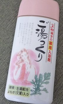 当店では、体を芯から温めるよもぎ入りの入浴剤「ご湯っくり」を販売しています。